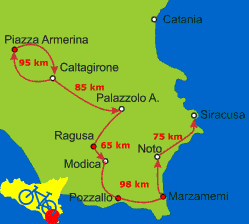 400 km/4000 HM in 8 Tagen: Eine sehr abwechslungsreiche Radreise für Rennrad-Fahrer und sportive Touren-Radfahrer über Nebenstraßen mit geringem Verkehr. Anfangs durch das hügelige Hinterland, später entlang der Südost-Küste Sizilien.